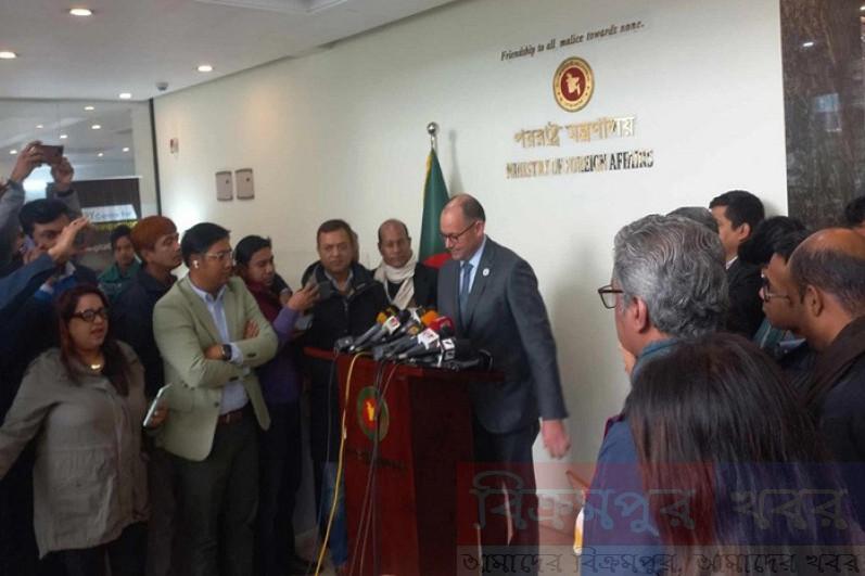 বিক্রমপুর খবর :অনলাইন ডেস্ক :আগামী মাসগুলোতে ব্যবসা-বাণিজ্য, জলবায়ু ও রোহিঙ্গা ইস্যুতে বাংলাদেশ ও যুক্তরাষ্ট্র একসঙ্গে কাজ করবে বলে জানিয়েছেন বাংলাদেশে নিযুক্ত মার্কিন রাষ্ট্রদূত পিটার হাস। আজ বুধবার মন্ত্রণালয়ে পররাষ্ট্রমন্ত্রীর সঙ্গে বৈঠক শেষে এই কথা জানান পিটার হাস।