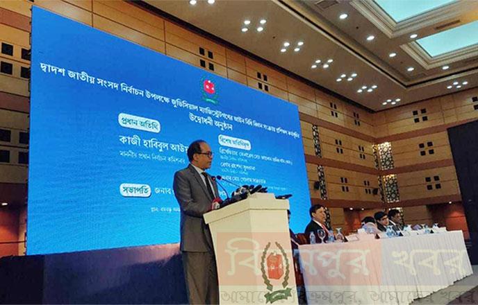 বিক্রমপুর খবর : অনলাইন ডেস্ক : প্রধান নির্বাচন কমিশনার (সিইসি) কাজী হাবিবুল আউয়াল বলেছেন, নির্বাচনে সহিংসতাকে কোনোভাবেই বরদাস্ত করা উচিৎ না, এটা জনমনে ভীতির সৃষ্টি করে। সেটা প্রতিরোধ করতে হবে।তিনি বলেন, ‘দ্বাদশ জাতীয় সংসদ নির্বাচনে ইন্টারন্যাশনাল ডাইমেনশন আছে। সেটাকে খাটো করে দেখার কোনো সুযোগ নেই। কারণ ইন্টারন্যাশনাল কমিউনিটির কাছে দেখাতে হবে নির্বাচনটা অবাধ ও সুষ্ঠু হয়েছে। কিছুটা উত্তাপ নির্বাচন হবে কিছুটা গন্ডগোল হতে পারে। সহিংসতা হতে পারে। এগুলো খুব বেশি ধর্তব্যের মধ্যে পড়ে না। অসহনীয় সহিংসতা প্রতিরোধ করতে হবে। সহিংসতাকে কোনোভাবেই বরদাস্ত করা উচিৎ না, এটা জনমনে ভীতির সৃষ্টি করে।’আজ সোমবার রাজধানীর শেরেবাংলা নগরের বঙ্গবন্ধু আন্তর্জাতিক সম্মেলন কেন্দ্রে জুডিশিয়াল ম্যাজিস্ট্রেটদের প্রশিক্ষণ কার্যক্রমের উদ্বোধনী অনুষ্ঠানে সিইসি এসব কথা বলেন। আজ ৬৫০ জন জুডিশিয়াল ম্যাজিস্ট্রেট প্রশিক্ষণ কর্মসূচিতে অংশ নেন।নির্বাচন কমিশন সচিবালয়ের সচিব মো. জাহাংগীর আলমের সভাপতিত্বে অনুষ্ঠানে বিশেষ অতিথি ছিলেন নির্বাচন কমিশনার ব্রিগেডিয়ার জেনারেল (অব.) মো. আহসান হাবিব খান, নির্বাচন কমিশনার বেগম রাশেদা সুলতানা এবং আইন, বিচার ও সংসদ বিষয়ক মন্ত্রণালয়ের আইন ও বিচার বিভাগের সচিব মো. গোলাম সারওয়ার।একই দিনে ৪৩ হাজার ভোটকেন্দ্রে ভোটগ্রহণ হবে উল্লেখ করে তিনি বলেন, সর্বোচ্চ দায়িত্বটা কমিশনকে দেয়া হয়েছে। নির্বাচন কমিশন কখনোই তার একক শক্তিতে নির্বাচন আয়োজন করতে পারে না। একারণেই সংবিধানে আরপিওয়ে সুষ্পষ্ট করে বলা আছে নির্বাচন পরিচালনা করতে কমিশন যেভাবে জনবল চাইবে রাষ্ট্র বা সরকার তা দিতে বাধ্য। এবার রাজনৈতিক নেতৃত্বের একটা অংশ নির্বাচন বর্জন করেছে জানিয়ে সিইসি বলেন, তারা শান্তিপূর্ণভাবে নির্বাচনের বিরুদ্ধে নির্বাচনের বিপক্ষে বক্তৃতা করছেন। সেটা অসুবিধা নেই; তারা জনমত সৃষ্টি করতে পারেন। কিন্তু সহিংস পন্থায় যদি এটার বিরুদ্ধাচরণ করা হয় বা যারা ভোটাধিকার প্রয়োগ করবেন তাদের যদি বাধা প্রদান করা হয়। তাহলে অবশ্যই সংকট দেখা দেবে। সেই সংকট মোকাবেলা আমাদেরকে করতে হবে। তিনি বলেন, আমাদের কাজ কিন্তু সরকার গঠন করা নয়। আমাদের কাজ খুব সীমিত। নির্বাচনটা আয়োজন করে দিয়ে সংসদ সদস্য নির্বাচিত করার ব্যবস্থা করা। নির্বাচনের মাধ্যমে যদি সরকার নির্বাচিত না হয় তাহলে অগণতান্ত্রিক সরকার গঠিত হওয়ার অবকাশ থাকে।সিইসি বলেন, অনেকেই বলেন কমিশন নির্বাচনটা তিনমাস পিছিয়ে দিলে ভালো হতো। কারণ রাজনৈতিক দলগুলোর মধ্যে ঐকমত্য হয়নি। নির্বাচন তিনমাস পিছিয়ে দেওয়ার এখতিয়ার নির্বাচন কমিশনের নেই। অনেকে মনে করেন নির্বাচন কমিশন অসীম ক্ষমতার অধিকারী