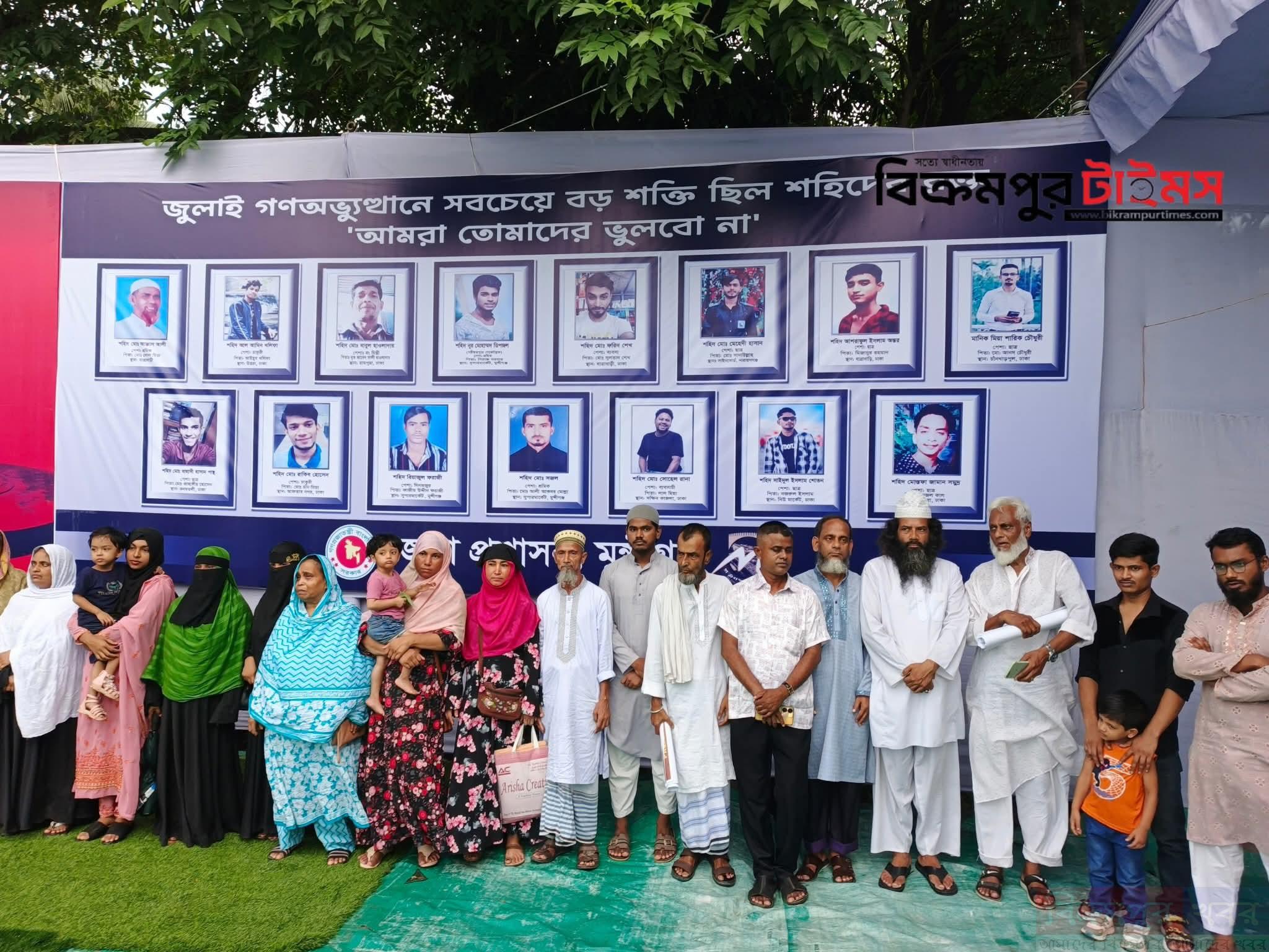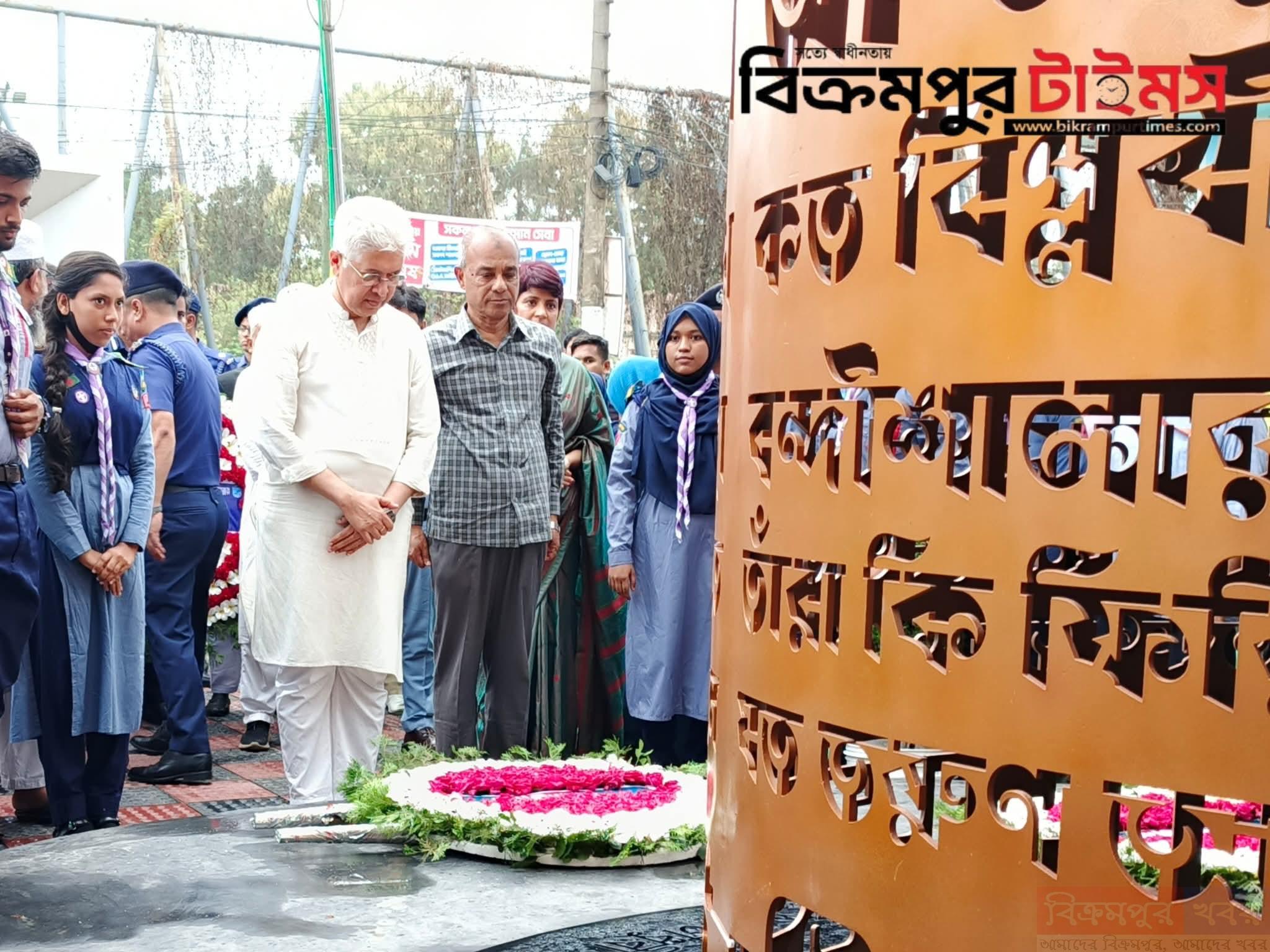 স্বরাষ্ট্র ও কৃষি উপদেষ্টা অবসরপ্রাপ্ত লেফটেন্যান্ট জেনারেল জাহাঙ্গীর আলম চৌধুরী এবং গৃহায়ণ ও গণপূর্ত এবং শিল্প উপদেষ্টা আদিলুর রহমান খান মুন্সিগঞ্জের জুলাই শহীদ পরিবারের সদস্যদের নিয়ে জুলাই শহিদ স্মৃতিস্তম্ভে পুষ্পস্তবক অর্পণ করেন তারা। পরে শহিদদের স্মরণে দোয়া ও মোনাজাত অনুষ্ঠিত হয়।