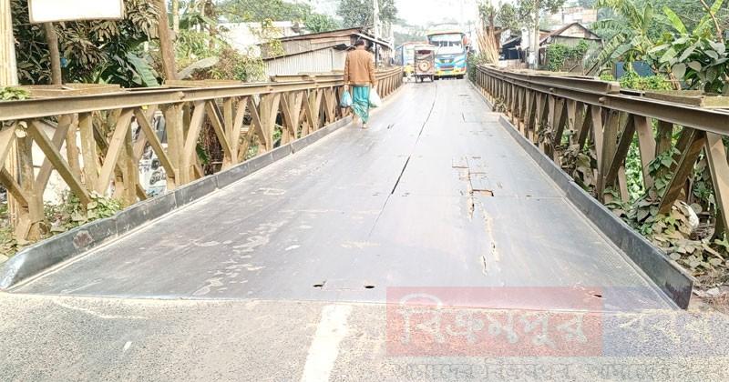গতকাল সোমবার সরেজমিনে দেখা গেছে, মাওয়া লৌহজং থেকে টঙ্গীবাড়ি-মুন্সীগঞ্জ যাতায়াতের আঞ্চলিক প্রধান সড়কের মালিরঅংক বাজারে প্রবেশমুখে সংলগ্ন মেয়াদ উত্তীর্ণ এই বেইলি সেতুর পাটাতনে মরিচা ধরে ভেঙে গিয়ে বড় বড় গর্তের সৃষ্টি হয়েছে। এতে যান চলাচল ব্যাহত হচ্ছে। এর ওপর দিয়ে প্রতিনিয়ত হালকা ও ভারী যানবাহন চলাচল করে থাকে। দীর্ঘদিন ধরে এর মেরামত কাজ না করায় এটি অত্যন্ত নাজুক অবস্থায় রয়েছে। মরিচা ধরে পাটাতন ভেঙে গিয়ে বিভিন্ন স্থানে বড় বড় গর্তের সৃষ্টি হয়েছে। রেলিংয়ের বিভিন্ন অংশ মরিচা ধরে নষ্ট হয়ে গেছে। এই ব্রিজের ওপর দিয়ে ঝুঁকি নিয়ে প্রতিদিন শত শত যানবাহন ও জেলার চার উপজেলার হাজারো মানুষ প্রতিদিন চলাচল করে। প্রধান এই সড়কের এ সেতু দিয়ে ঝুঁকি নিয়ে চলছে যানবাহন। এছাড়াও ঢাকা না গিয়ে মাওয়া পদ্মা সেতু থেকে মুক্তারপুর ব্রিজ হয়ে নারায়ণগঞ্জ এবং পূর্ব ও দক্ষিণবঙ্গে যাতায়াতে শর্টকাট রাস্তা হিসেবে কয়েক লাখ মানুষ আসা যাওয়া করে এ সড়ক পথ দিয়ে।
